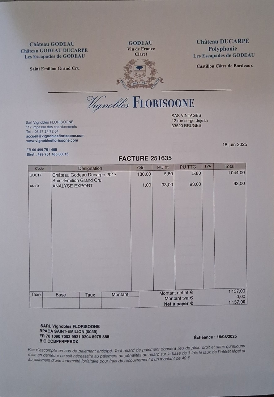 | 9 janv. 2026 | Décl. créance VIGNOBLES FLORISOONE SARL - 17256178070.jpg | Document Arcure | Décl. créance VIGNOBLES FLORISOONE SARL - 17256178070.jpg - 185 KB |